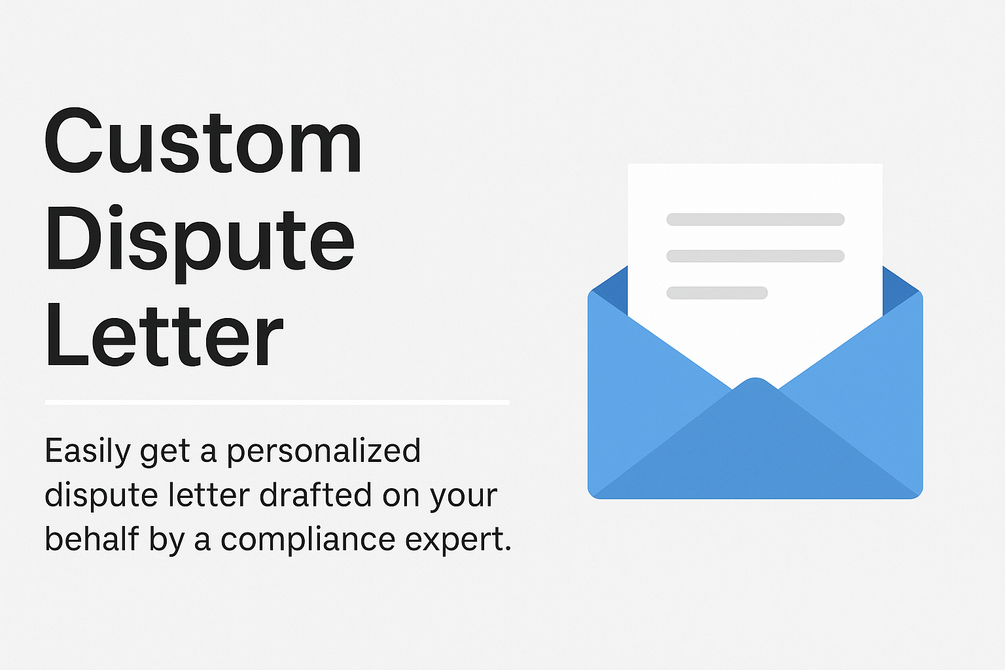 Get a custom dispute letter tailored to your situation—perfect when you only need help with one bureau (Experian, Equifax, or TransUnion) or one creditor. We draft your letter in clear, compliant language and include easy mailing & tracking instructions so you can send it with confidence.